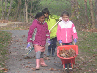 2D was busy working in the garden this morning! We raked ALL of the leaves in the garden and around the garden. Mr. Corvino brought us a BIG wheel barrel to use and Mr. Conard stopped by to see what we were doing. We worked well together and helped each other with the gardening tools.